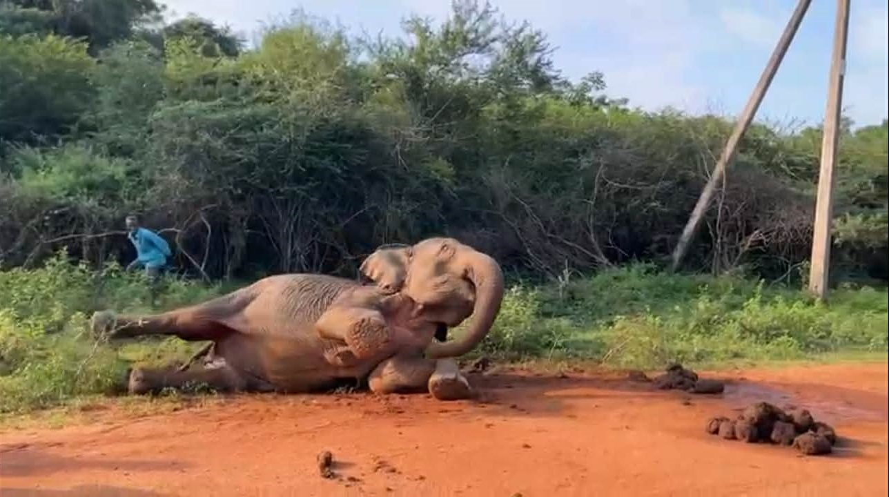 சுமார் 10 வயது மதிக்கத்தக்க தாக கூறப் படுகின்ற குறித்த யானை எழும்பி நடக்க முடியாத நிலையில் காணப்படுவதாக தெரிவிக்கப்படுகின்றது.